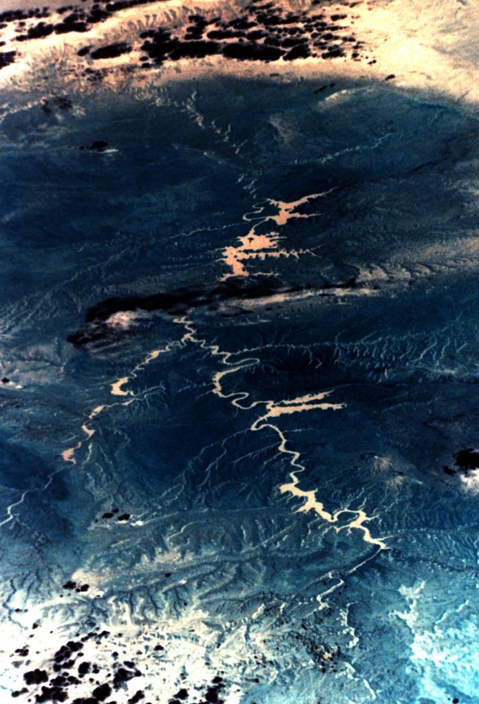 National Archives Identifier: 6347842An outer space view of the Colorado River, surrounded by part of Arizona and Utah. The photo was taken from the space shuttle orbiter Columbia during the first space transportation system test mission.