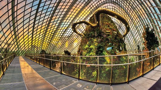 In the middle of Singapore is a real cloud forest in a horticulture-themed leisure indoor park called Gardens by the Bay.