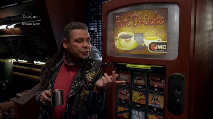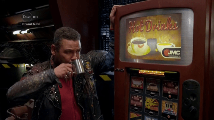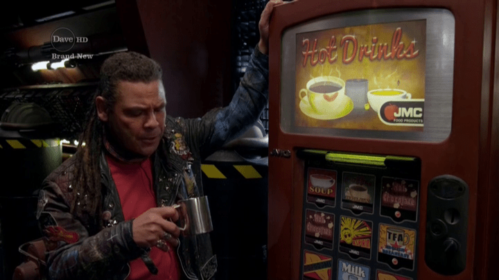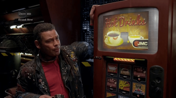 This fits what we are told about Lister in the early series, and certainly the novels; he’s a big flirt, and has no trouble finding a date… unless it’s someone he really cares about, in which case he throws a Guybrush Threepwood (look, I’m old, so my references are old, OK?). The idea that Lister is so naturally suave that he accidentally seduces one vending machine and has another one fall in love with him is inspired.