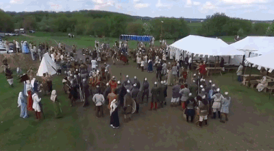 “The medieval warrior, realizing the consequences of his impulsive act, immediately approached the owner of the drone and offered to pay for the damage.