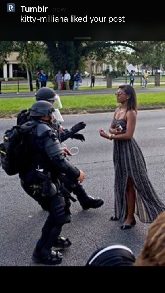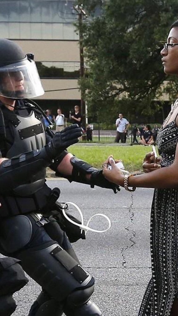 This picture is breaking Twitter: Woman confronts police at BLM protest in Baton Rouge, Louisiana. Who is she?✊🏾
