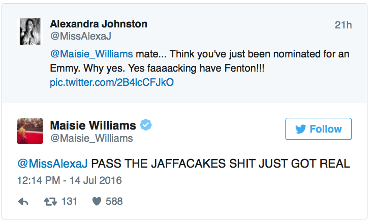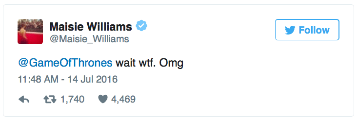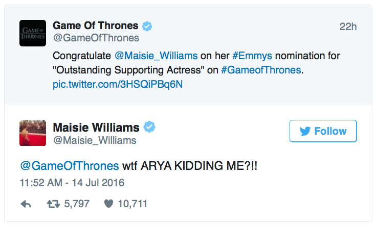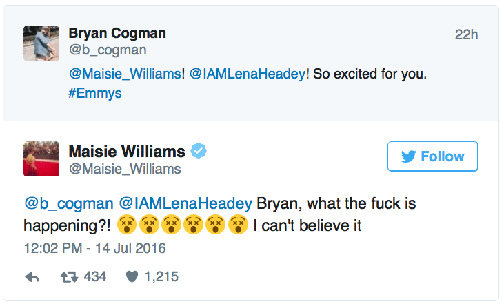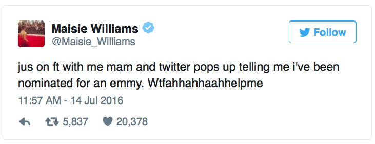 July 15, 2016 Overly Devoted Archivist Uncategorized awww, game of thrones, maisie williams 0 Comments micdotcom: Maisie Williams’ reaction to being nominated for an Emmy is the most pure thing on the Internet right now. [x] Share this: Share on X (Opens in new window) X Share on Facebook (Opens in new window) Facebook Like this:Like Loading...