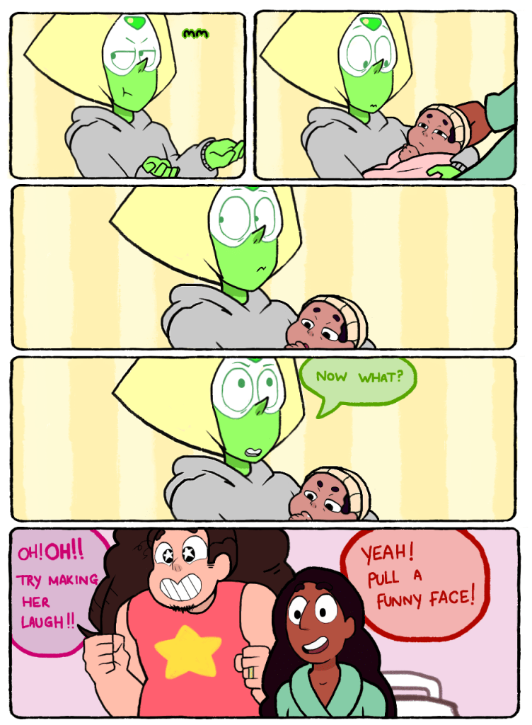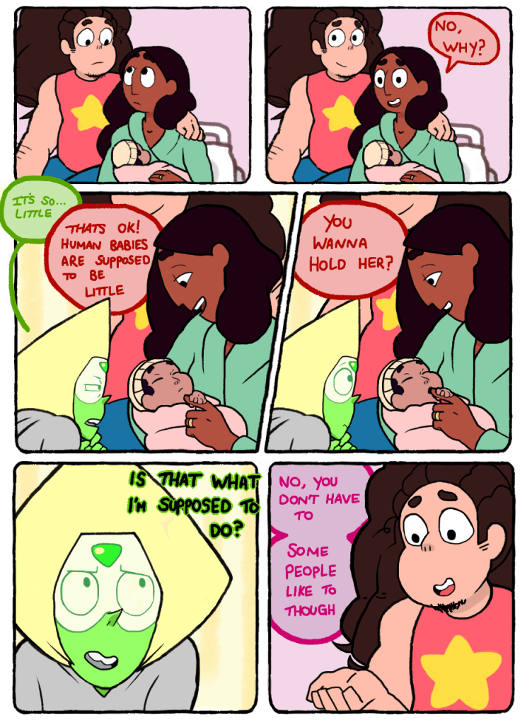 July 28, 2016 Overly Devoted Archivist Uncategorized awwww, steven universe 0 Comments crystalwitches: aunt peridot meets a baby (ft the crystal grandmas and president maheswaran’s family portrait) Share this: Share on X (Opens in new window) X Share on Facebook (Opens in new window) Facebook Like this:Like Loading...