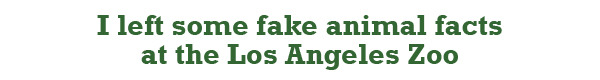August 11, 2016 Overly Devoted Archivist Uncategorized ahaha 0 Comments obviousplant: The zoo is more fun with made-up facts. See a bonus fact on Facebook. Share this: Share on X (Opens in new window) X Share on Facebook (Opens in new window) Facebook Like this:Like Loading...