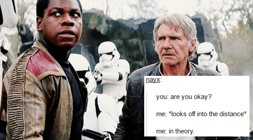 August 20, 2016 Overly Devoted Archivist Uncategorized finn, star wars 0 Comments aromanticren: “i really need to drive to a fied in the middle of nowhere and scream for hours” Share this: Share on X (Opens in new window) X Share on Facebook (Opens in new window) Facebook Like this:Like Loading...
