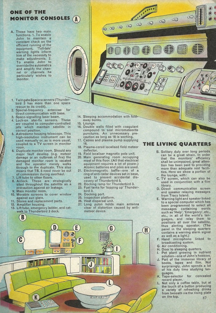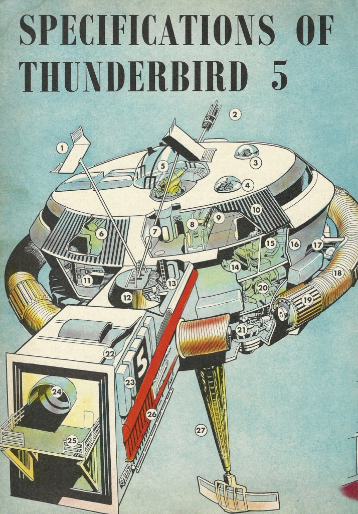 Cross-section of Thunderbird 5 from the Thunderbirds Annual 1967. Sadly, the creator/s aren’t credited, although the Annual’s cover itself surely has to be Frank Bellamy’s work.