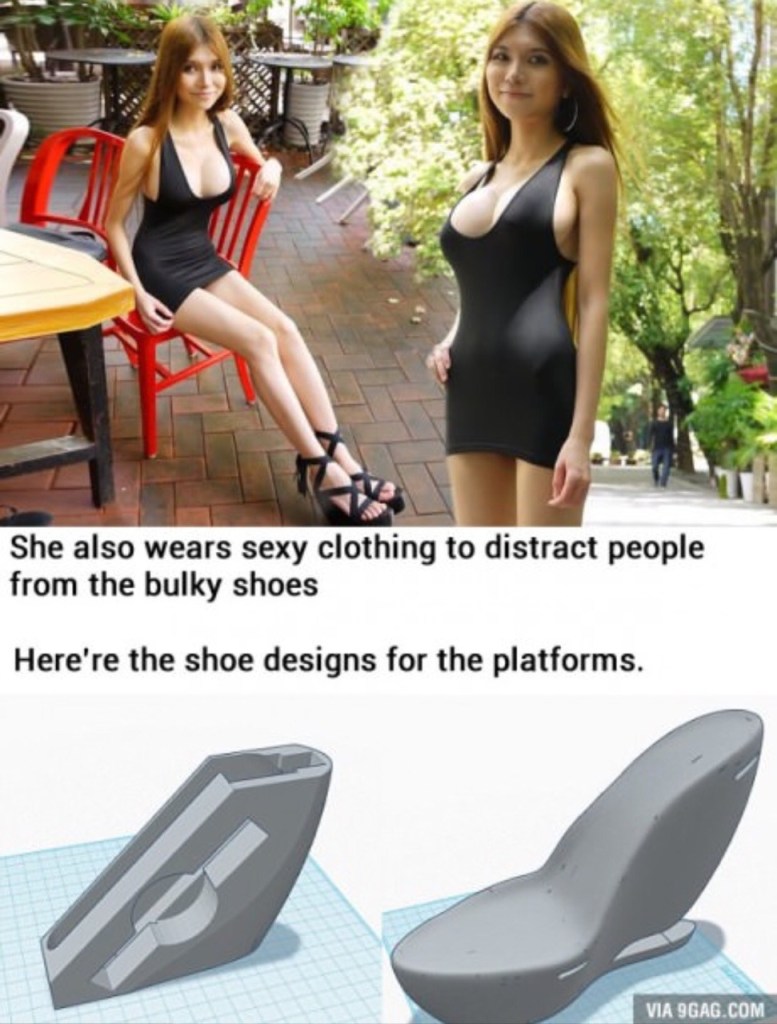 b) all these people wouldn’t have noticed her kit, which was her goal in the first placeLol “she also wears sexy clothing to distract people from the bulky shoes”