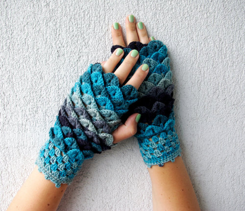 Latvian boutique Mareshop pays tribute to fairy tale mythology with the addition of stunning kaleidoscope colored crochet dragon scales, which are manifested in stunning fingerless gloves. Since they are completely hand crocheted with wool, acrylic and mohair, they will keep you cozy during your winter and fall walks.