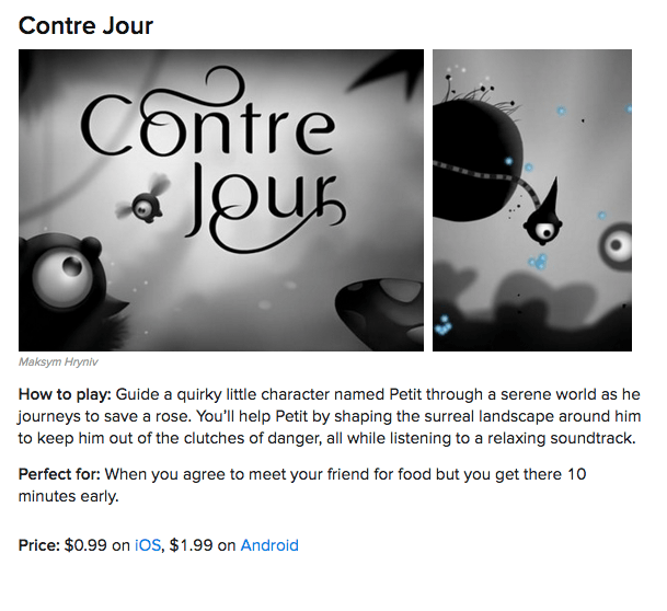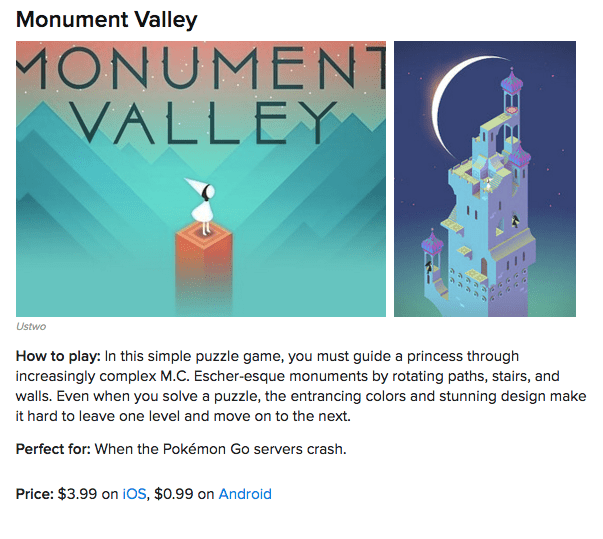 Monument Valley is an absolute joy and beauty of a game, and I’m definitely checking out some of the others now.