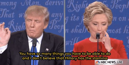 September 27, 2016 Overly Devoted Archivist Uncategorized hillary clinton, i cannot bring myself to make donald trump a tag on this blog 0 Comments refinery29: Donald Trump, a man who has never been elected to any public office, just tried to describe the Presidency to Hillary Clinton, the most over qualified candidate in the history of our country. Gifs: NBC News Share this: Share on X (Opens in new window) X Share on Facebook (Opens in new window) Facebook Like this:Like Loading...