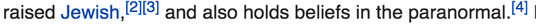 I don’t know…I suspect that if I ever got a Wikipedia page it would end up taking the ‘family/parent/grandparent was Jewish’ route purely because my mother’s father (but not her mother) was Jewish AND she went to a Jewish school and was I think more or less raised Jewish BUT some stuff happened and when I was born I was raised pretty firmly Christian for a while THEN some more stuff happened and my family isn’t religious anymore and I never really was I think BUT my mum sometimes still describes herself as Jewish BUT whilst I am super proud of the snippets of my Jewish ancestors’ history that I do know I’m not sure if I could ever describe myself as Jewish out of fear of appropriating an identity I’m not entitled to.