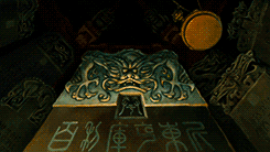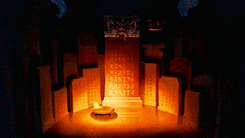 During the scene when Mulan decides to go to war instead of her father, she decides to do it while sitting on the foot of the Great Stone Dragon. The image of the dragon looking over Mulan is repeated several times throughout the sequence, and the bolts of lightning strike at significant times whenever the dragon is in sight. When Mulan takes her father’s scroll and when she is praying to her ancestors, the Great Stone Dragon can be seen. It is also engraved on the sword Mulan uses to cut her hair and the handles of the wardrobe containing the armor are in the shape of the dragon’s head. The dragon’s eyes glowing in the temple symbolizes Mulan’s role as protector of her family awakening, instead of the actual dragon.