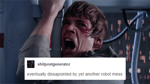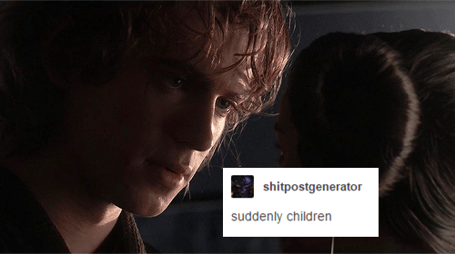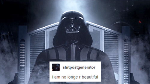 October 28, 2016 Overly Devoted Archivist Uncategorized star wars 0 Comments anakinskydala: star wars + shitpostgenerator: part 3 Share this: Share on X (Opens in new window) X Share on Facebook (Opens in new window) Facebook Like this:Like Loading...