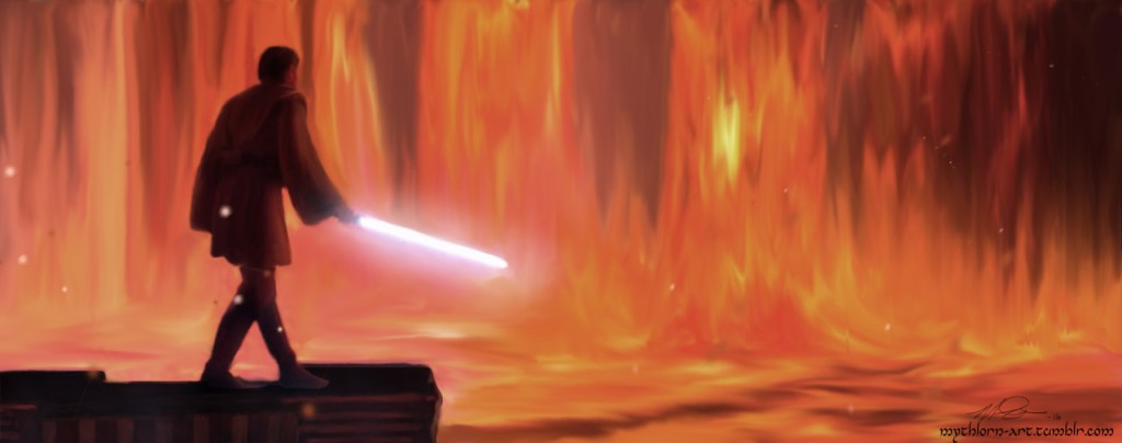 So I might have begun painting this …. about ten months ago. Just now finished it. There is a reason I don’t do comic art. Jeebus! Panels take me forever to complete x.x Anakin and Obi-Wan, the showdown. You know how the rest of the story goes.I hope you enjoy~