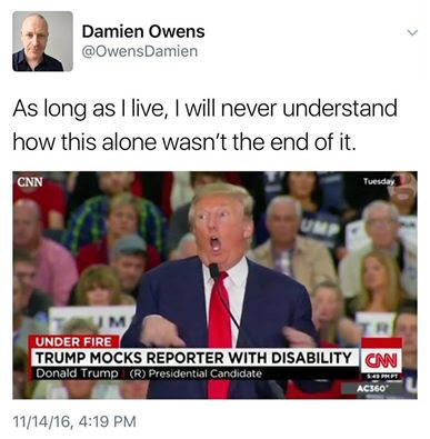 Whenever he said something horrible, offensive, sexist, out of place, inappropriate, I was like “okay, now they drop him as a candidate… I mean, they can’t keep him.”