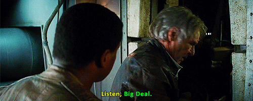 And Han just doesn’t care. He finds him amusing, he looks out for the kid, he never judges him for wanting to flee from the First Order. Then there’s all of their interaction on the Starkiller planet. It’s just so fun to watch.