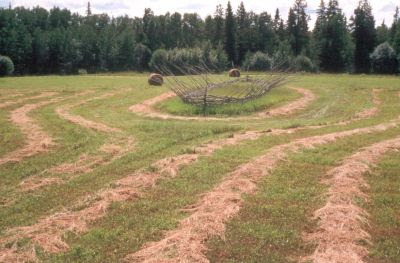 Peter Von Tiesenhausen has developed artworks all over his property in northern Alberta. There’s a boat woven from sticks that is gradually being reclaimed by the land; there is a fence that he adds to each year of his life, and there are many “watching” trees, with eyes scored into their bark.