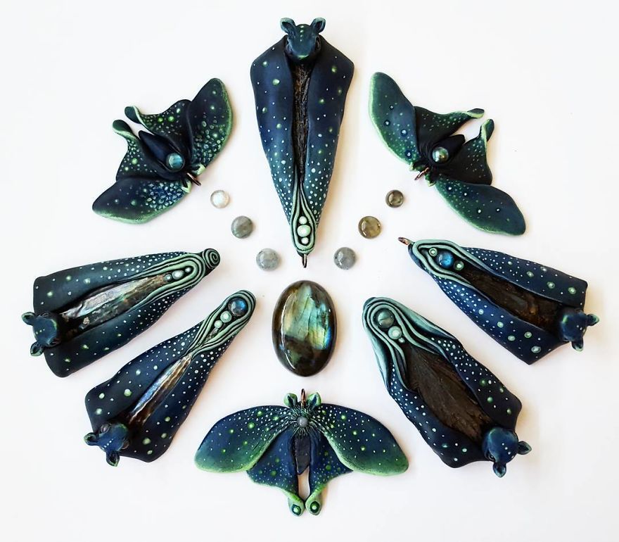 Florida-based artist Cheryl Lee designs nature-inspired pieces, which pay homage to the mystical worlds of fairies, gnomes, princes and princess. Combining a group of natural elements, including seashells, crystals and the visual presence of mushrooms. She says “The process of creation is what is special to me, while the outcome is special to you. What is this world if not a symbiotic relationship, not only to earth and sea but to you and me. ” Find her work in her Etsy shop.