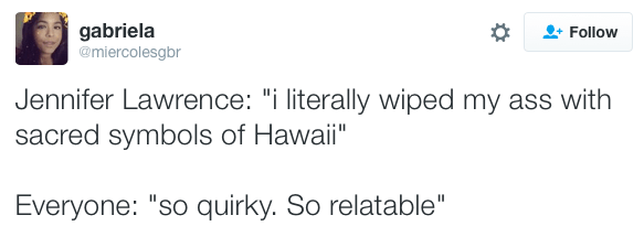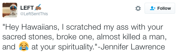 December 9, 2016 Overly Devoted Archivist Uncategorized for fuck's sake jennifer 0 Comments micdotcom: Jennifer Lawrence laughed about desecrating native land in Hawaii — and is being dragged for it Share this: Share on X (Opens in new window) X Share on Facebook (Opens in new window) Facebook Like this:Like Loading...