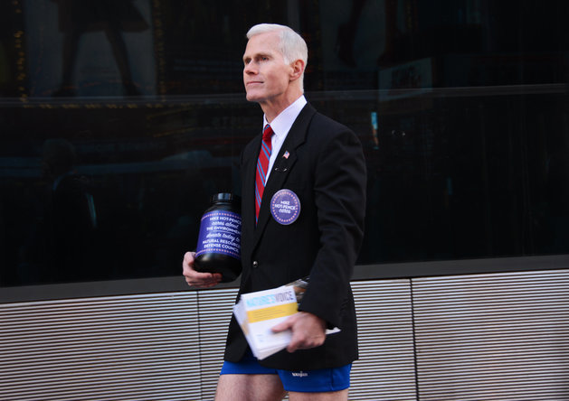 A gay man who happens to look eerily similar to anti-LGBT extremist and Vice President-elect Mike Pence is putting his looks to good use ― by wandering the streets of NYC in short shorts and collecting money to benefit important organizations.