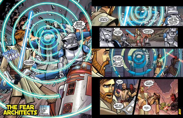 I did a little bit of digging on this one, called the “The Fear Architects.” Apparently, the CIS builds some kind of droid that makes people afraid or conjures up their worst fears or memories or something ridiculous. So in this thing, the clones run away instead of fight.