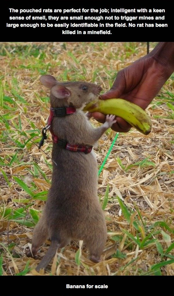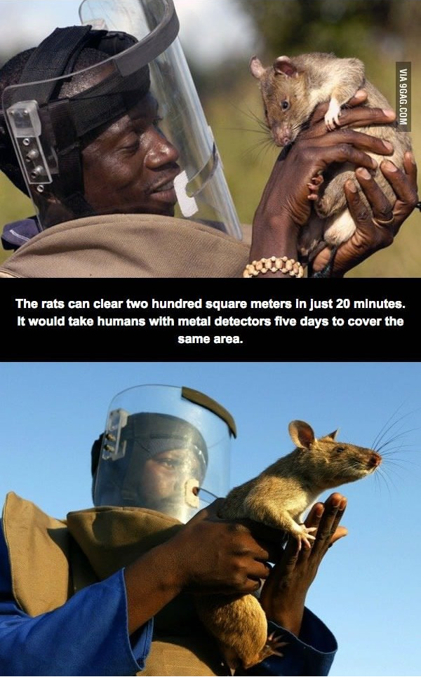 this same species is also trained to identify tuberculosis in samples by smell, meaning they can test for TB at a rapid rate with a high accuracy :)