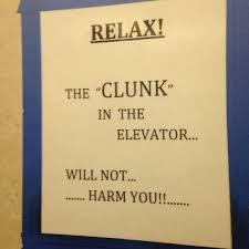 The “CLUNK” in the elevator… will not… ……..harm you!!!