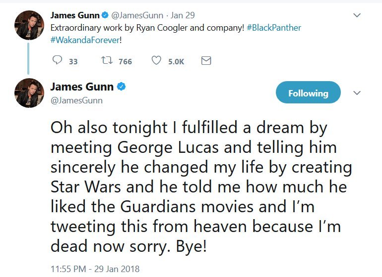 January 31, 2018 Overly Devoted Archivist Uncategorized black panther, george lucas, james gunn 0 Comments George Lucas and James Gunn hung out together at the Black Panther premiere! [x] Share this: Share on X (Opens in new window) X Share on Facebook (Opens in new window) Facebook Like this:Like Loading...
