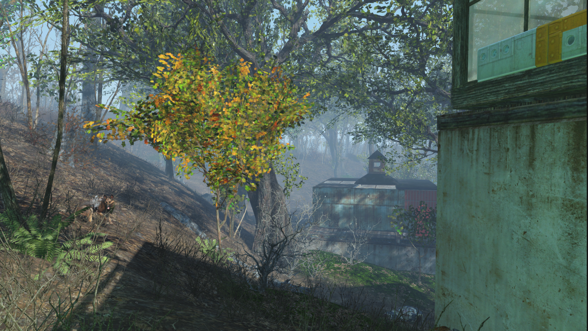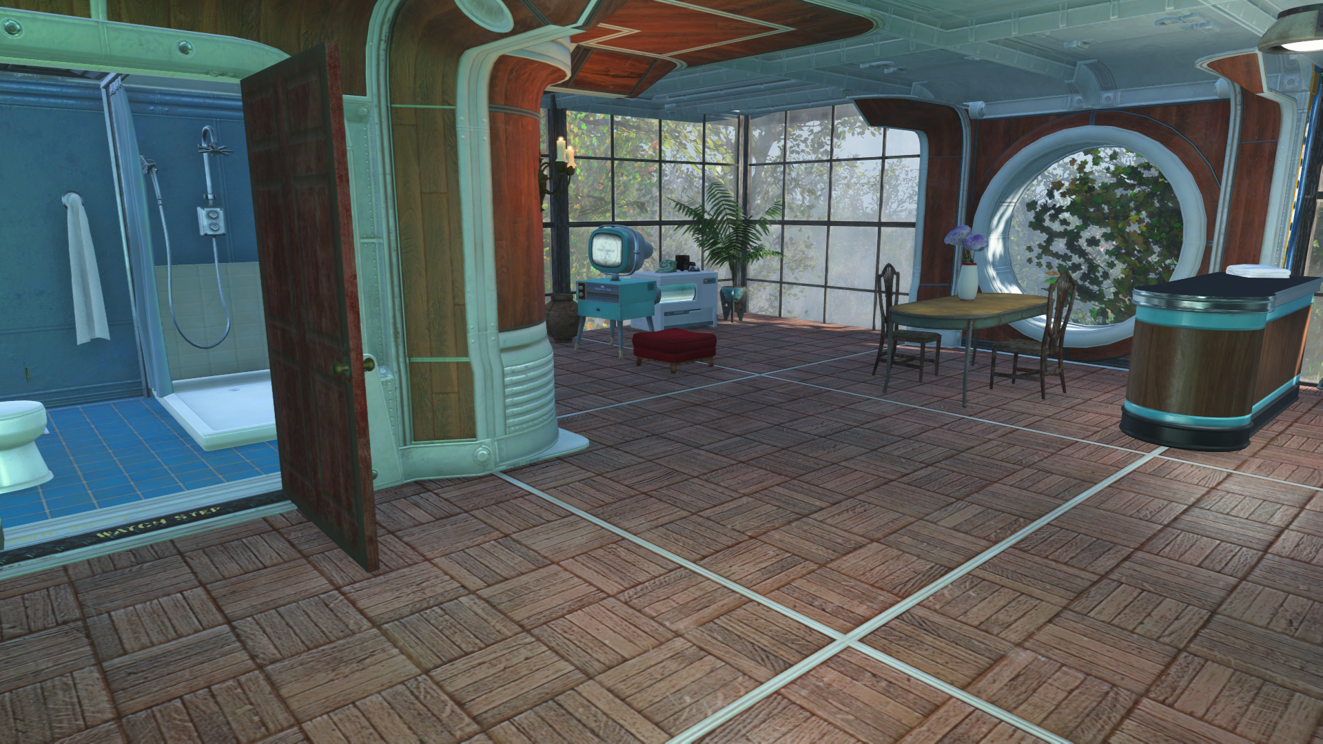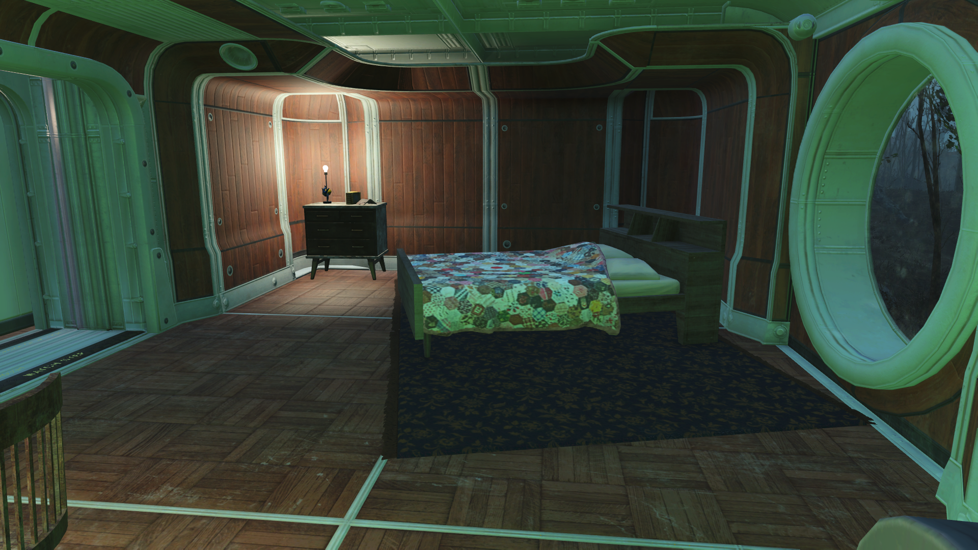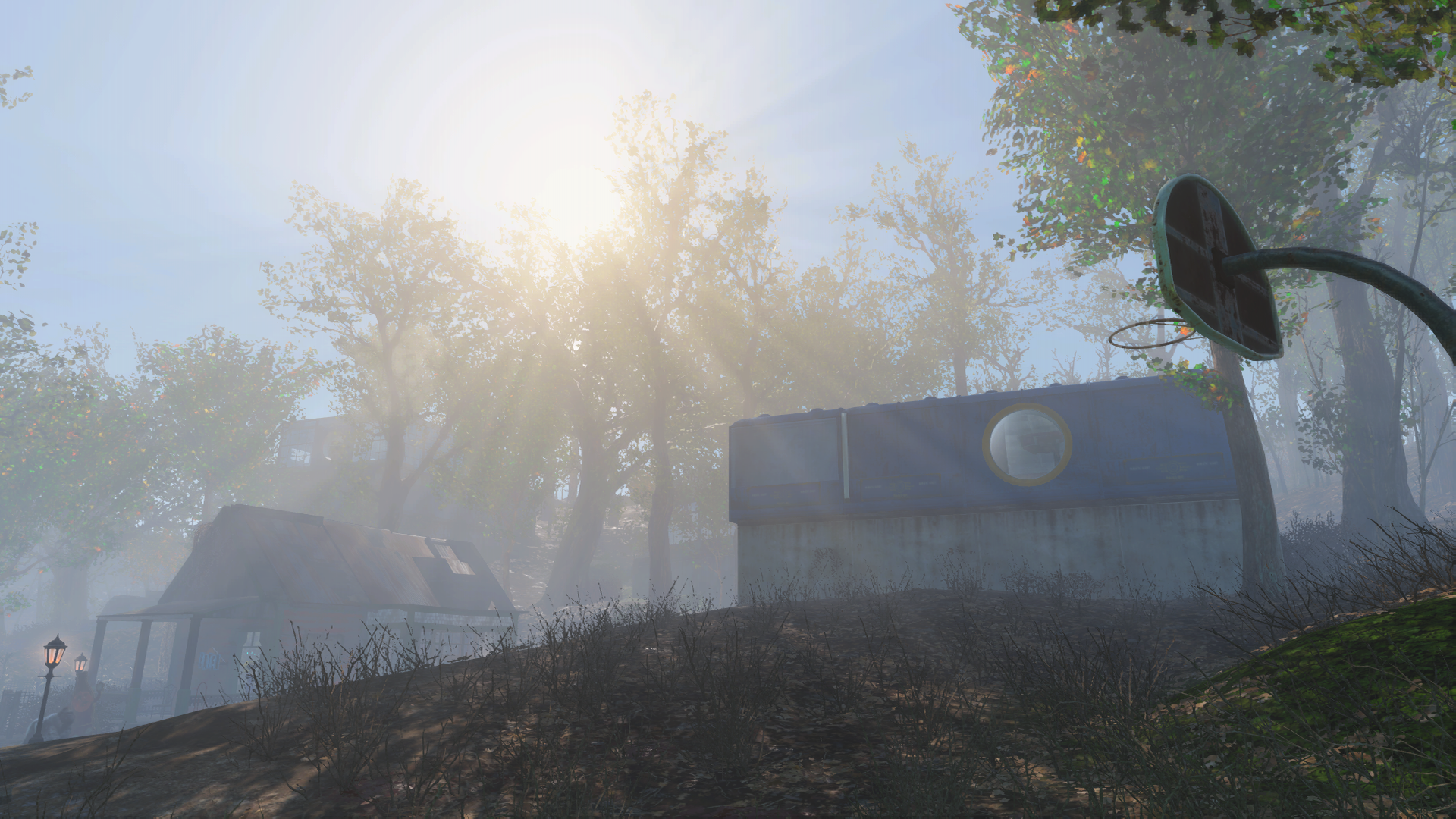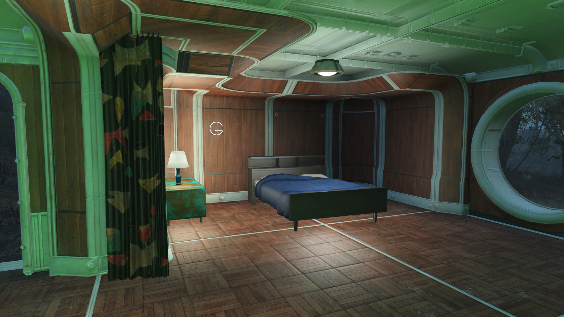 Okay, to the left of the police station there’s a house, constructed from salvaged Vault parts as many houses are…