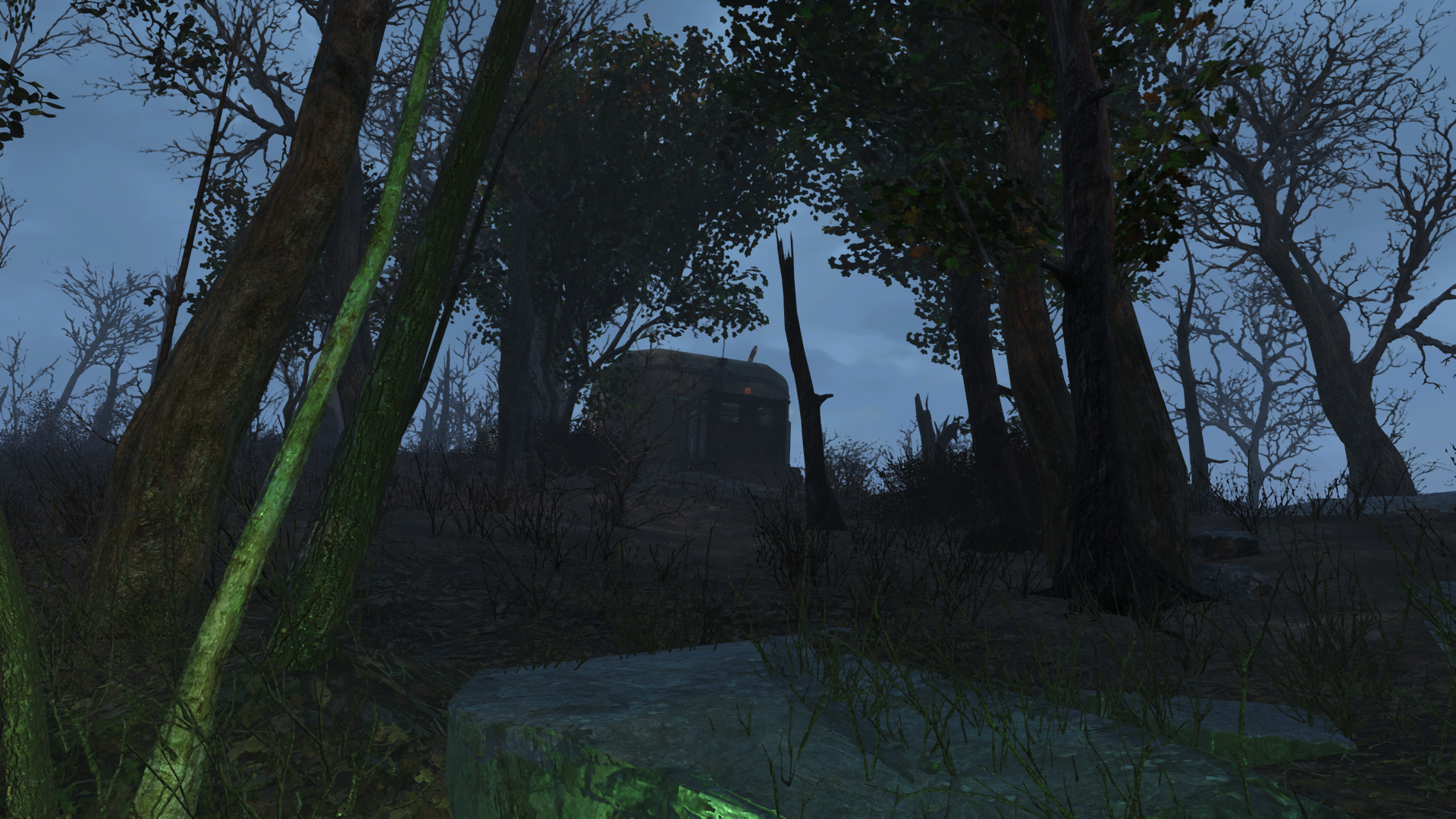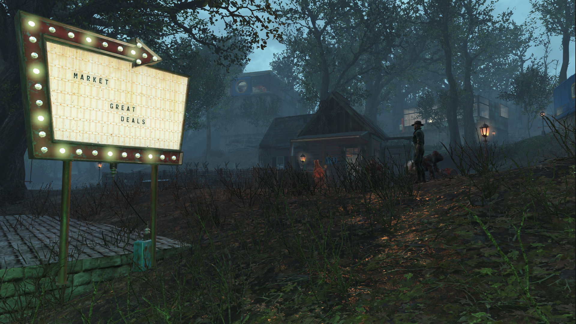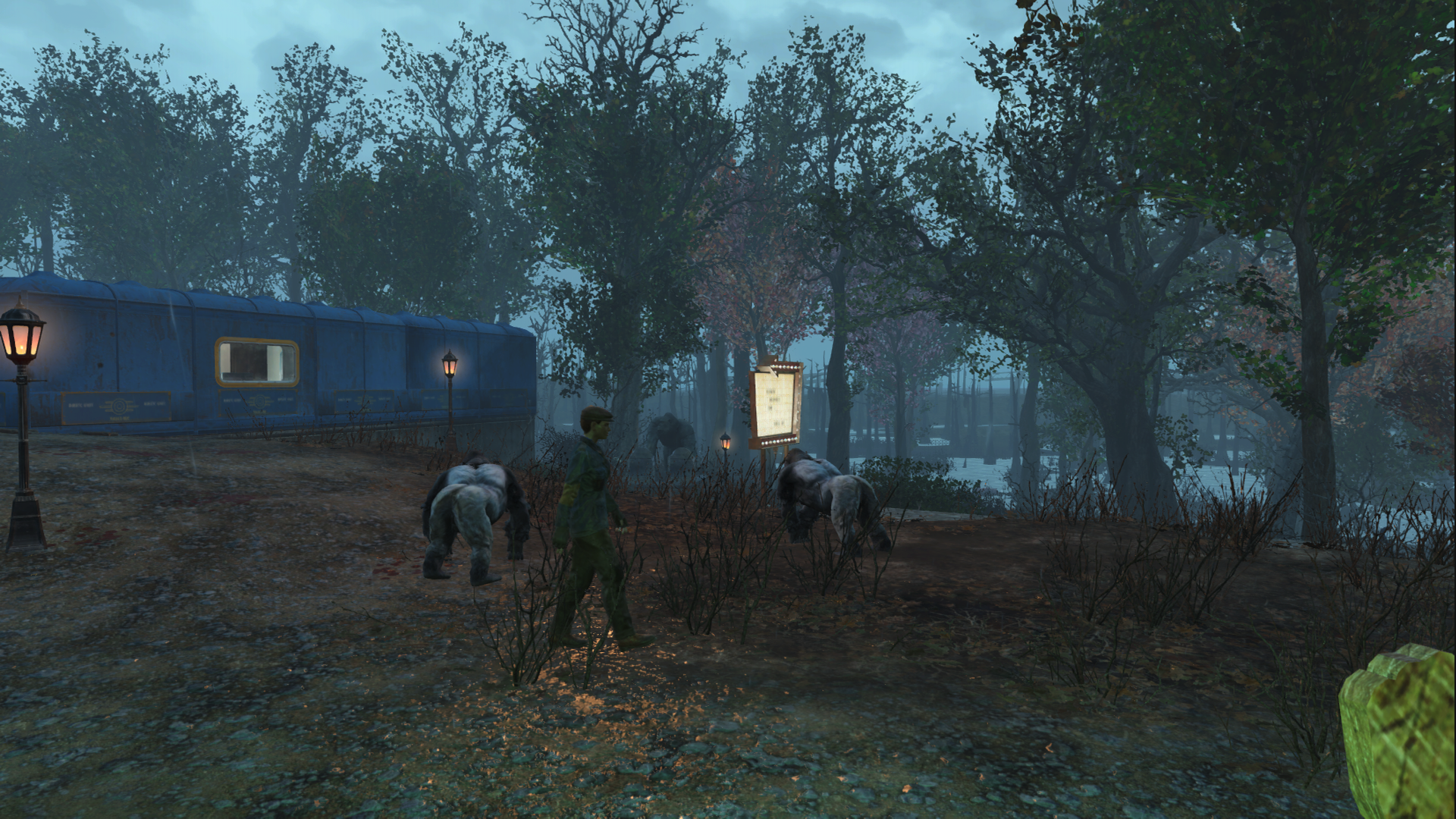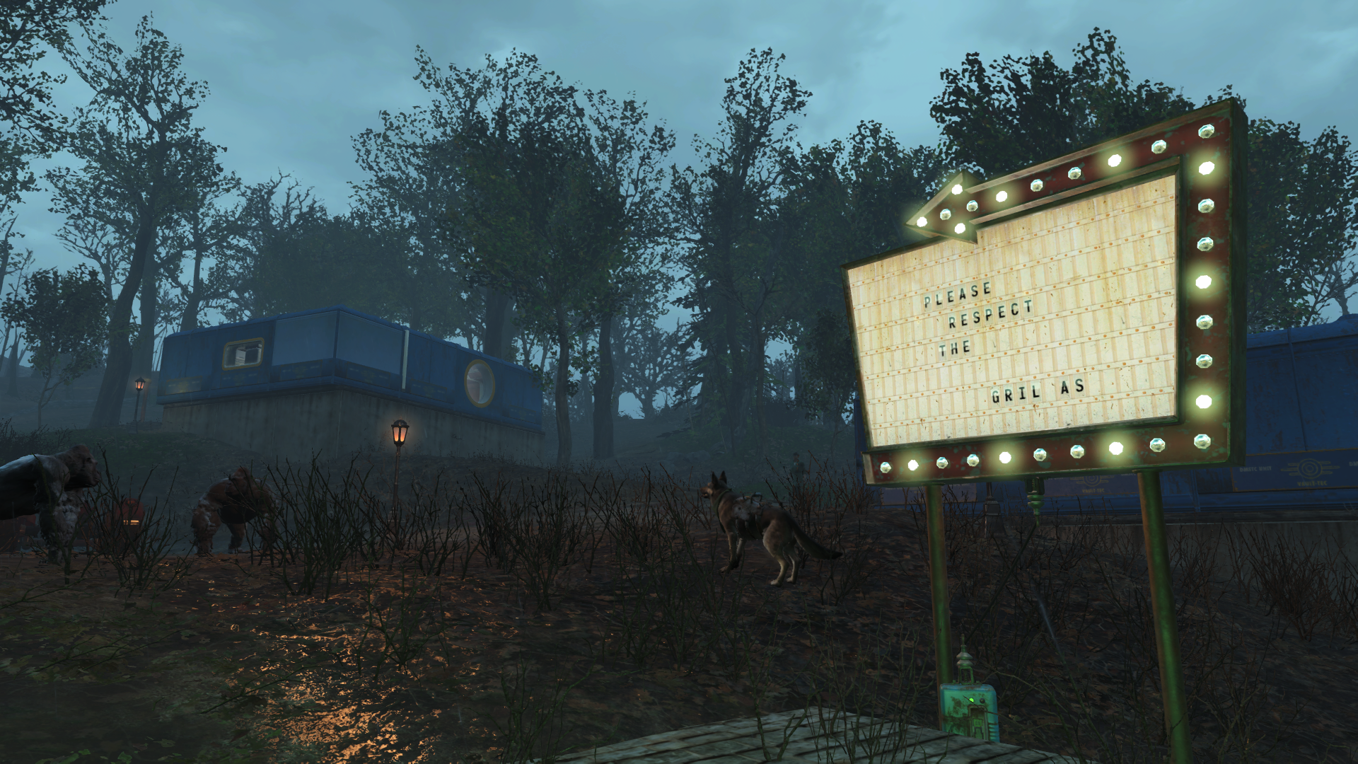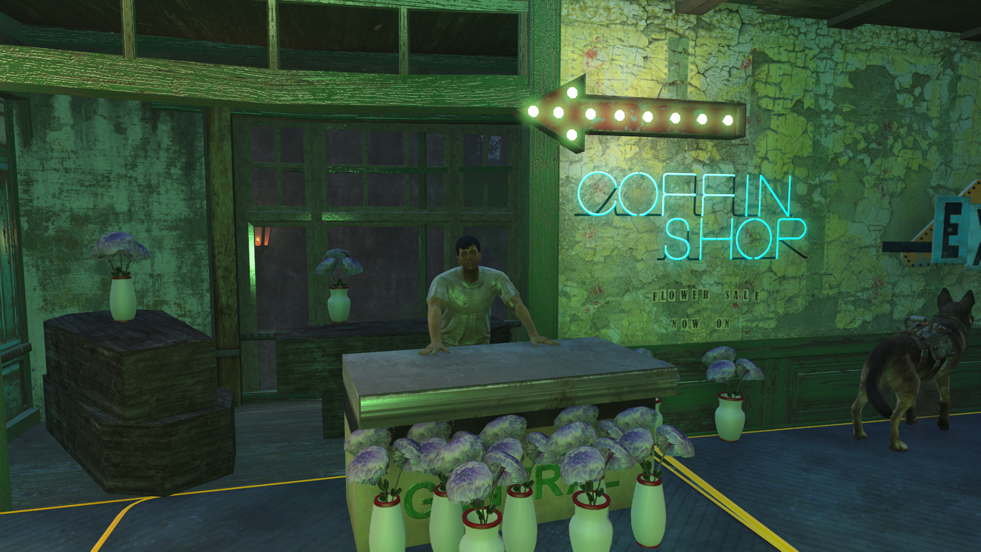 Okay, to the left of the police station there’s a house, constructed from salvaged Vault parts as many houses are…