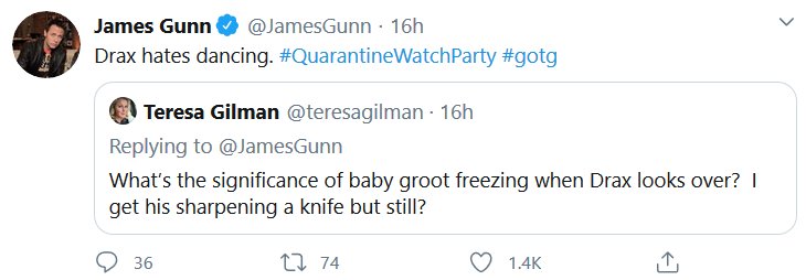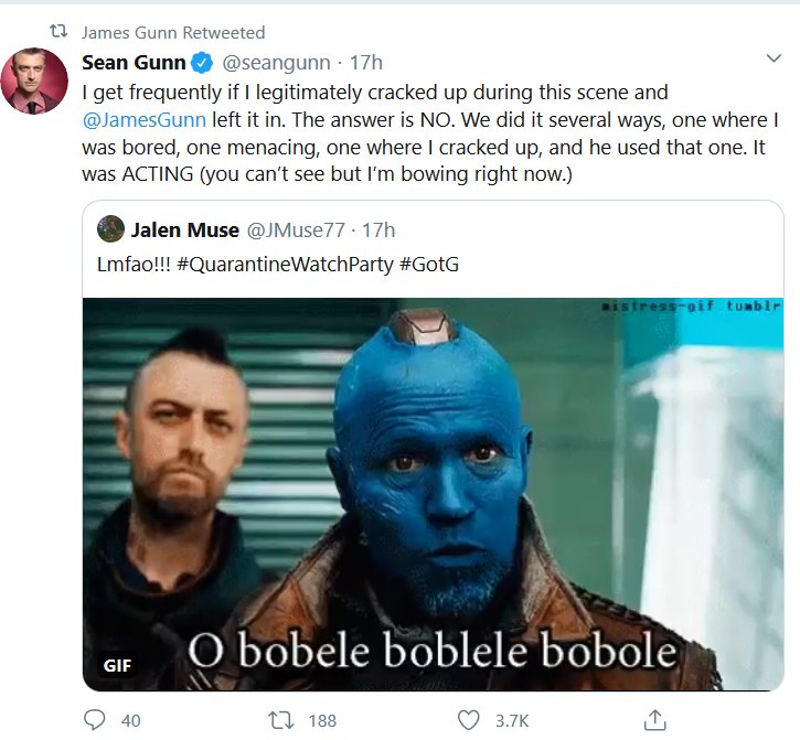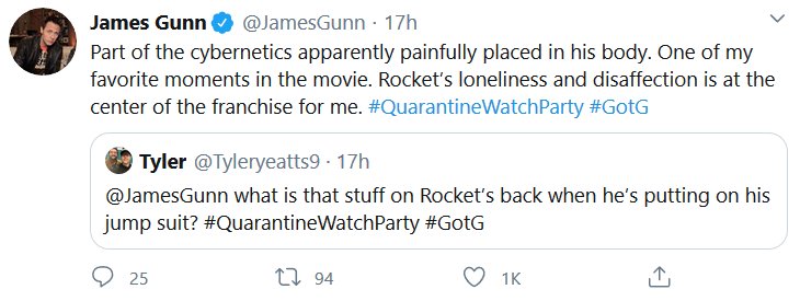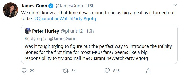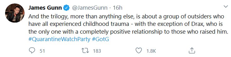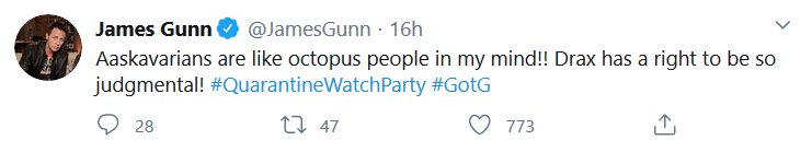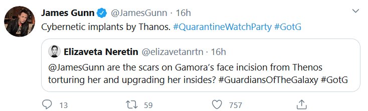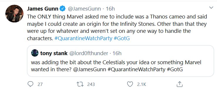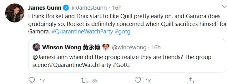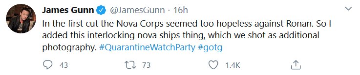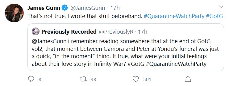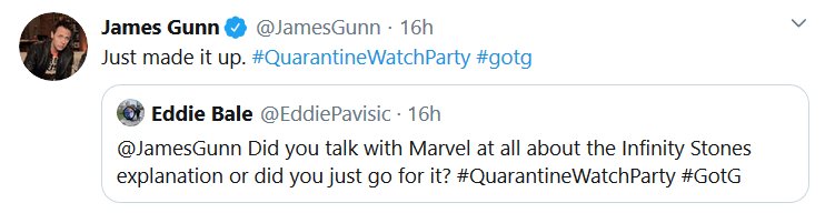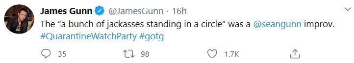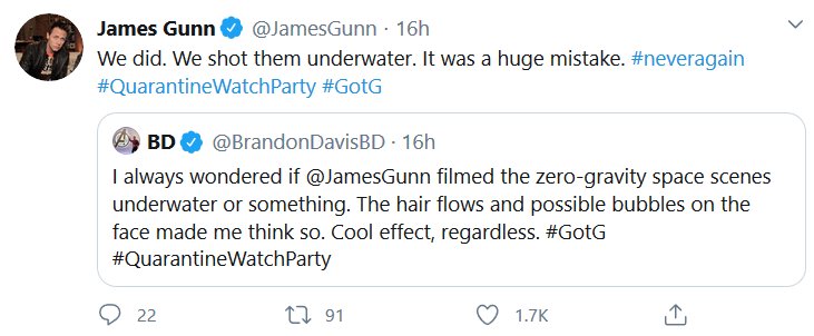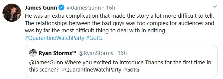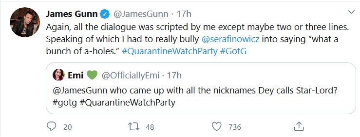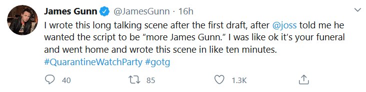 Apparently there was a watch-along of the first GOTG yesterday and James Gunn and the cast shared some stuff! I missed it all being in the wrong timezone and all, but here’s the highlights! I had a blast reading them, I hope they do Vol 2 next.