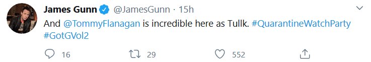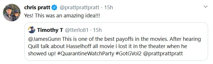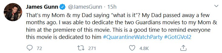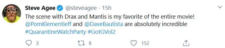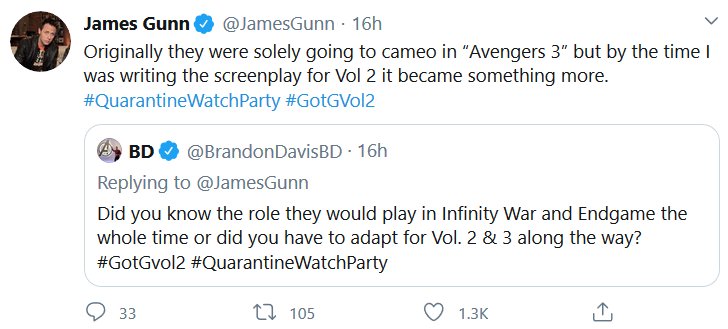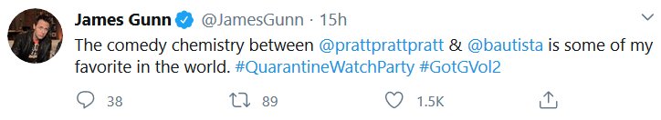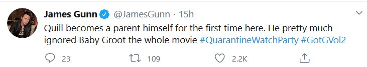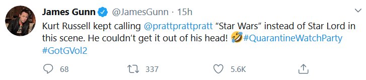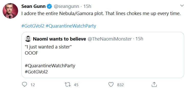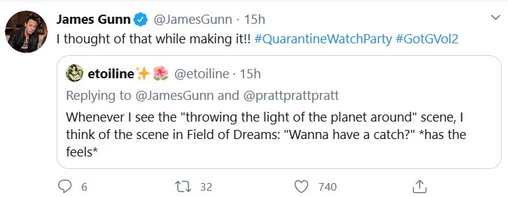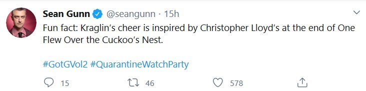 The Guardians of the Galaxy crew did a watchalong of the second movie just like I wanted, and it was at 2am my time. Aw no. But, just like last time, I decided to put all the most substantive tweets together!