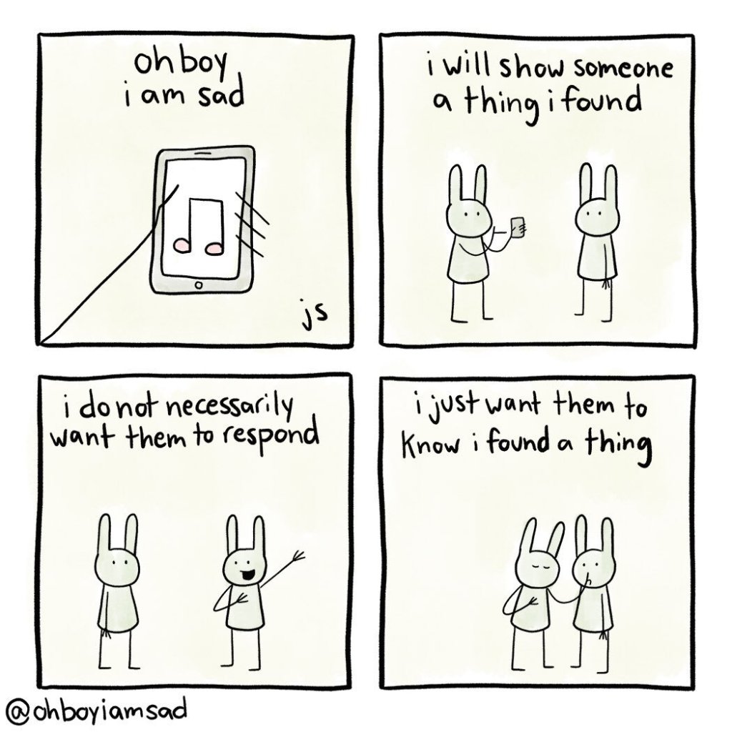 The webcomic Oh Boy I Am Sad came to end today. I didn’t check back on it with particular regularity or anything but I think I’m still gonna miss it while silmultaneously feeling glad that the author doesn’t need it anymore.