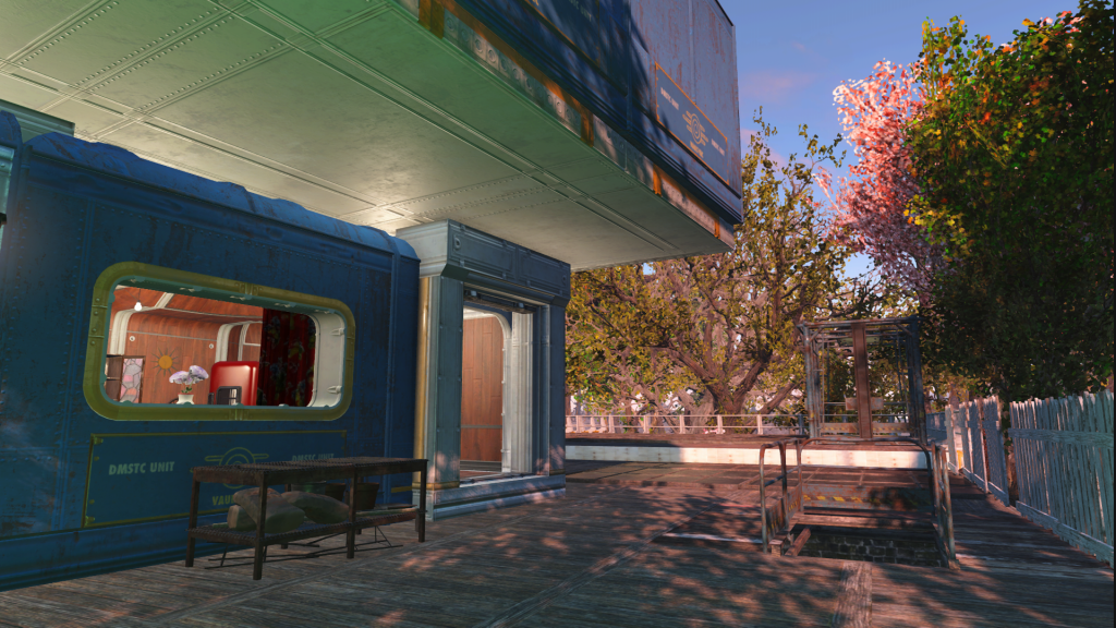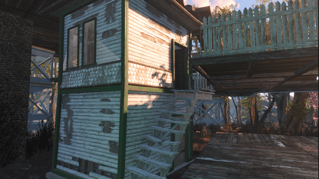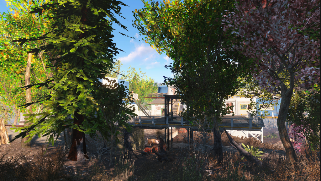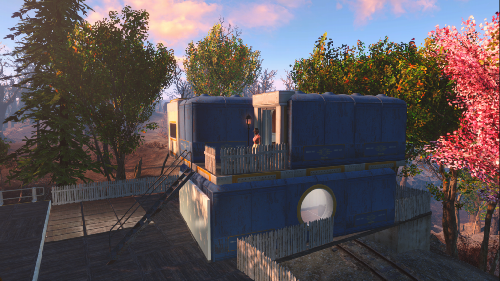 So I kept the station box there but built around it. We’ve got some homes built from Vault parts and plenty of trees.