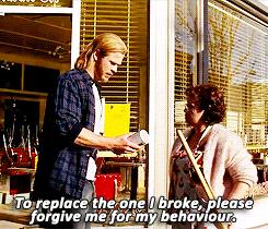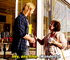 I love how Thor learns to interact by watching and listening. Look at that last gif. She is showing acceptance and appreciation to him by touching his arm, so he reciprocates! Because he appreciates her too.