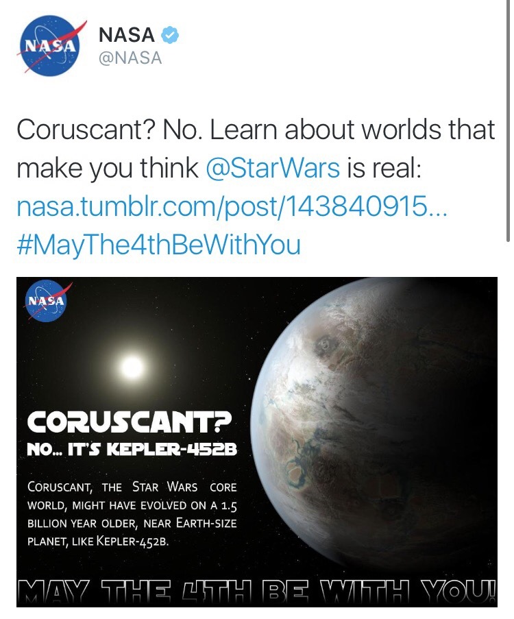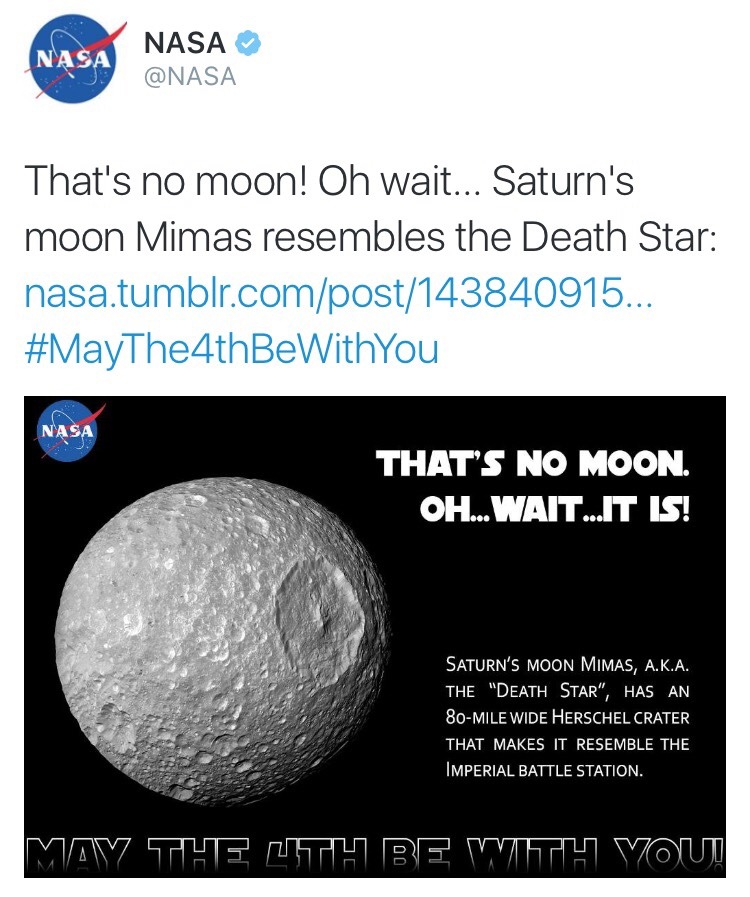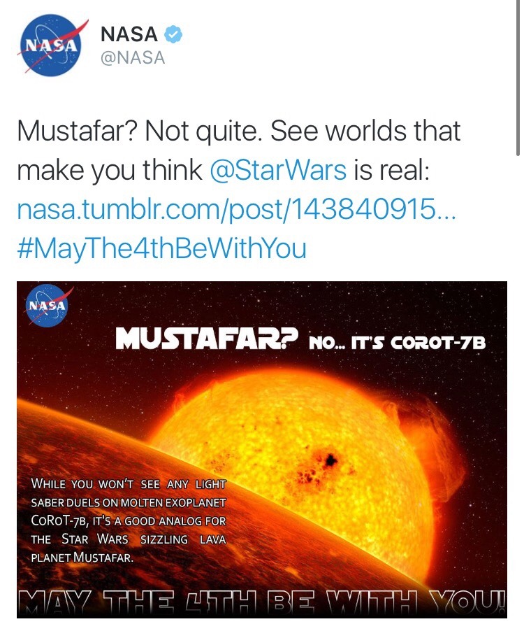 May 5, 2016 Overly Devoted Archivist Uncategorized :))))), nasa, space, star wars 0 Comments starwarsheckyeah: This is why I love NASA