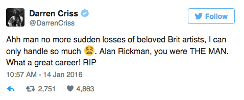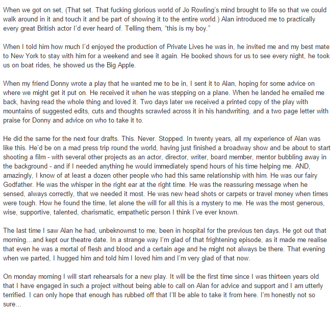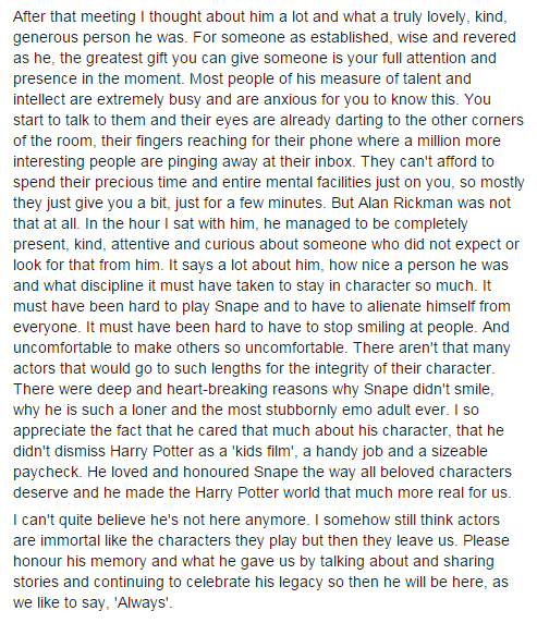 After everything that’s happened with this goddamn franchise I’m relieved that still the only bad thing anyone can say about Alan Rickman is, “he apparently had absolutely no musical taste whatsoever.”