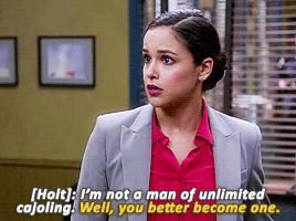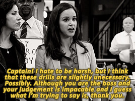 Blink twice if you’d like me to mercy kill you.#Brooklyn nine nine is a show #that not only has TWO Latinas in leading roles #these Latinas are nEVER portrayed in a stereotypical way #but at the same time we as an audience are reminded constantly that these are two Latinas who speak Spanish & come from Hispanic backgrounds #NOT JUST THAT #it also makes these two Latinas extremely good friends and colleagues #who have each other’s back because -and this is something the show admits- #they live in a field dominated by men #AND THEN #these Latinas are extremely badass and good at what they do and are so respected by everyone especially the show’s white leading man #and when this leading man does something disrespectful -whether racist or sexist- they call him out on it and put him in his place #AND HE LEARNS AND APOLOGIZES AND ADMITS HIS PRIVILEGE #PLEASE WATCH THIS DUMB SHOW (- @tall-butt)