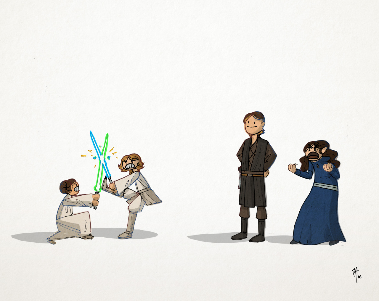 More Jedi knight Dooku and teeny Qui-Gon! These two, though… They’re fun to draw <3