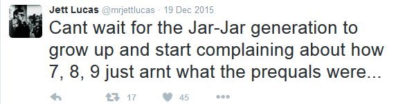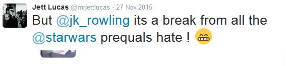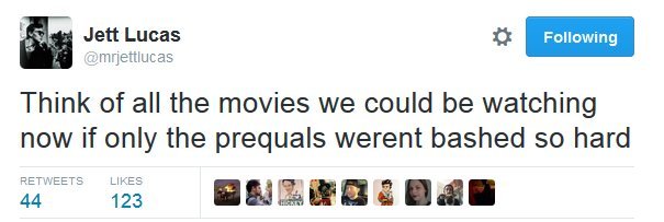 March 1, 2016 Overly Devoted Archivist Uncategorized bless, star wars 0 Comments fuckyeahgeorgelucas: Jett Lucas constantly flying to the defense of his father on Twitter is actually rather sweet, to the extent I don’t have the heart to tell him it’s actually spelled ‘prequel’.