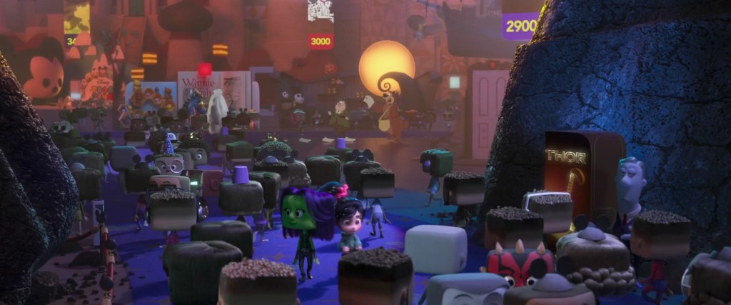 Though that does rather raise the question, since the little square people are meant to be “real” internet users in the movie, why are all these characters who are also presumably fictional in Ralph’s world walking around using the internet? Unless in the terms of this movie all Disney IPs are in fact real characters/people who just happen to live on the Internet? (See: the princesses.) But in that case why are Gamora, Maul etc square avatar thingys instead of looking how they do in their respective movies?
