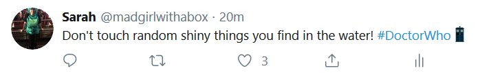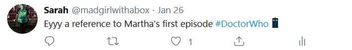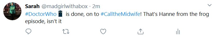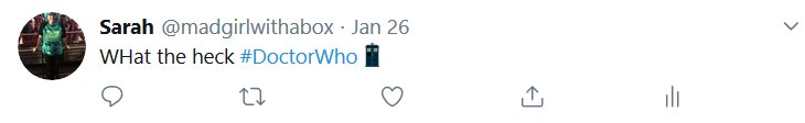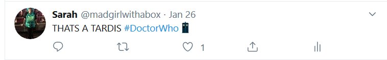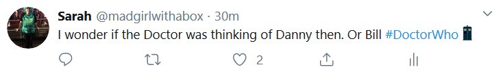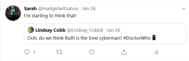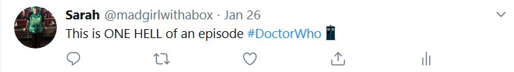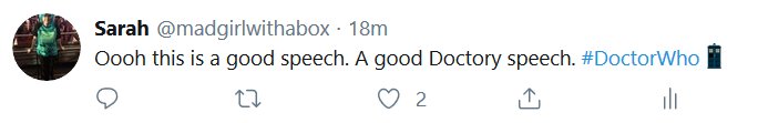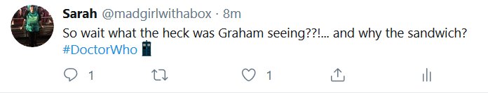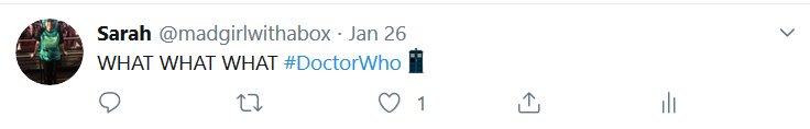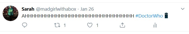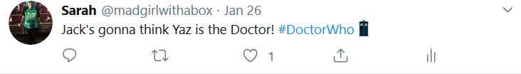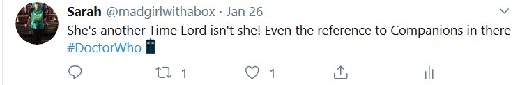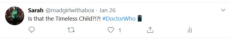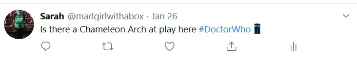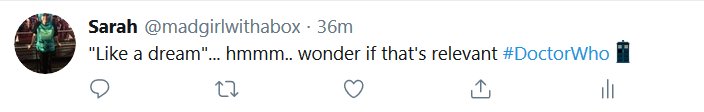 At the moment my money’s on “She’s inbetween the second and third Doctors” too. There’s so much potential there! I absolutely cannot wait to see what happens next.