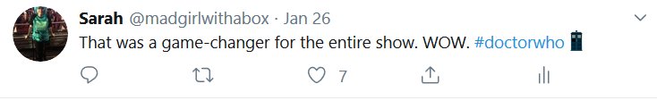 [Also, it’s strange – the first ever episode of Doctor Who was marred by the assassination of JFK. This mini-reboot of sorts is right now marred by the unexpected death of Kobe Bryant. History repeats itself.]