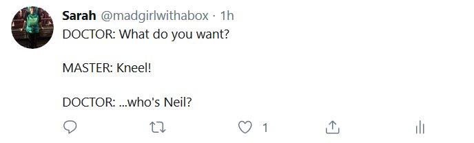 Twitter is ablaze in speculation about what the Big Thing in this episode is gonna be. Man I haven’t been this excited about a DW episode in ages! So here’s my guesses for returning character:
