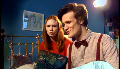 And lastly, Amy’s room is blue, like the TARDIS. Her room niftily sums up almost everything about her: her love of art, her obsession with the Doctor (there’s still Doctor dolls dotted all over the place), and her appreciation of her body and sex.