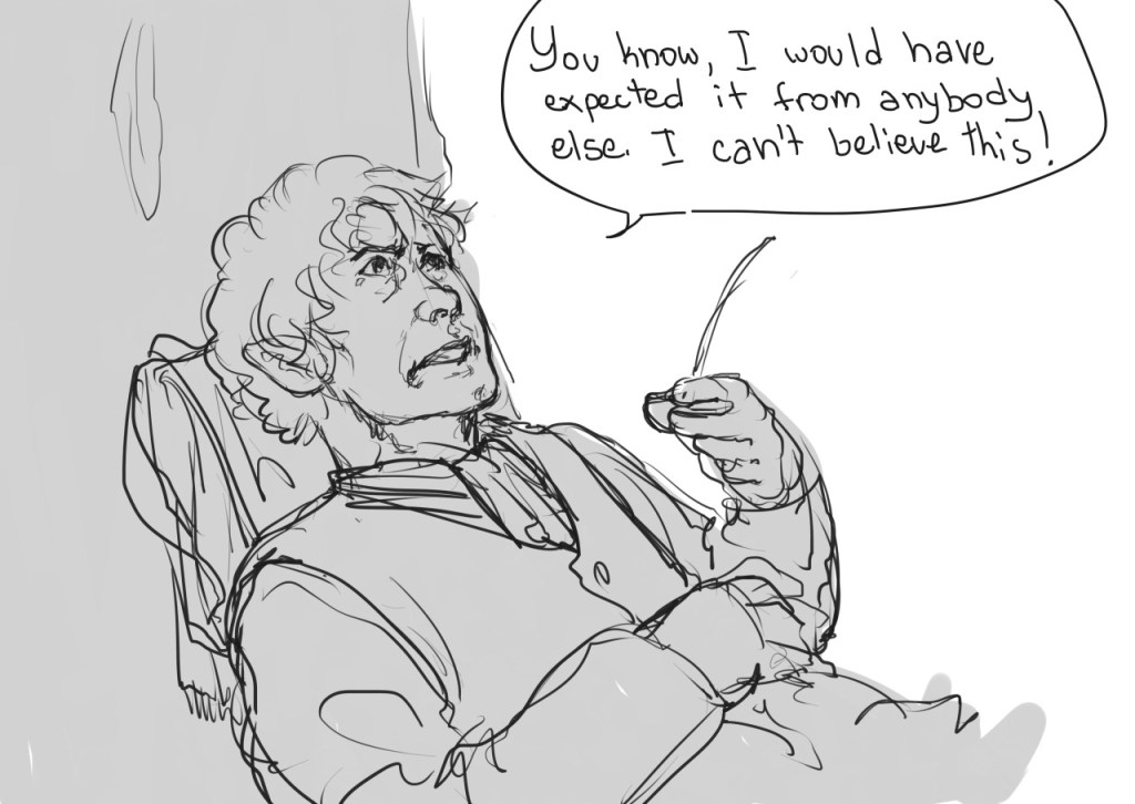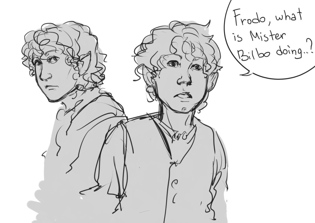 actually i am still thinking about this. in the movies especially the frodo & sam scenes are hard to watch, especially when contrasted to the quippy, active, external heroism of the three hunters. the road to mordor feels like a heavy, depressing slog; even the colours reflect this. frodo’s feebleness setting in the longer we spend with the ring hurts to watch; it makes us cringe away from it. we don’t want to look because frodo’s sort of internal heroism is not glamorous. we don’t like to fantasize ourselves as the protagonists of it. and it can hit quite close to home. but that’s precisely why they are such good scenes! and why we must not look away, or shrink from the discomfort, or misunderstand frodo as a character. that would be a disservice to the narrative.