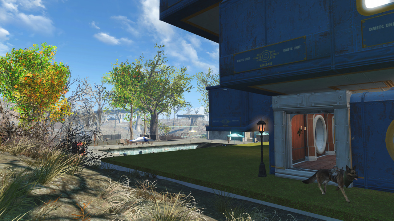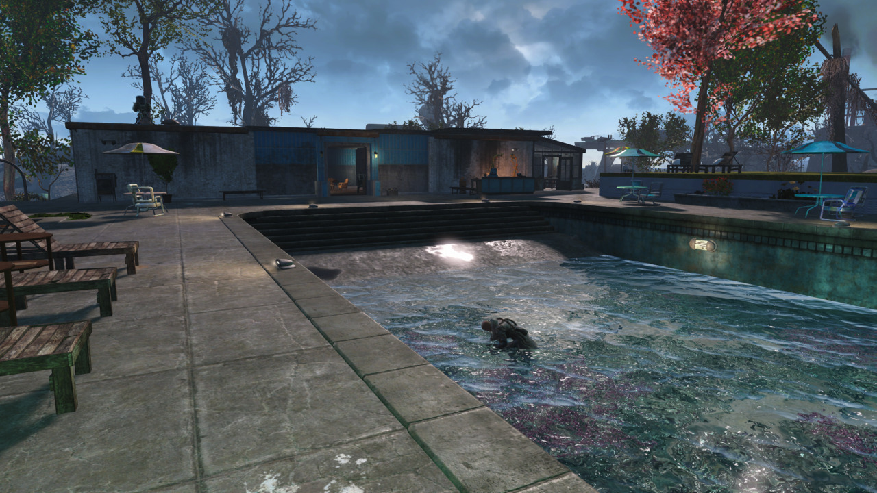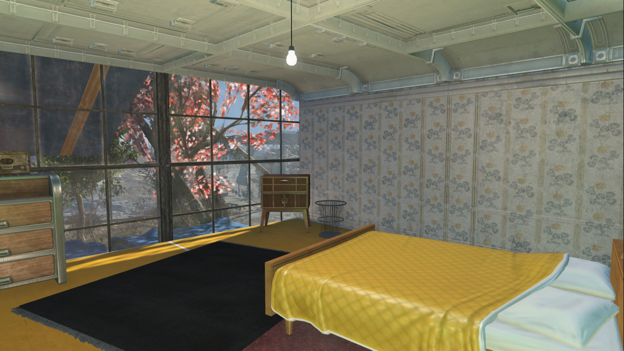 (I used so many mods for this I can’t even remember them, but the Clear Water mod, Colourful Trees, Decoration and Furniture Expansion Pack, More Vault Rooms, and Scrap Fallout were probably the main ones.)