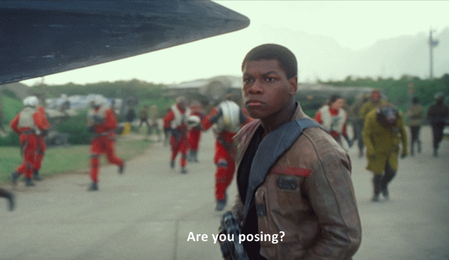 And one of the Medical Droids is droning on about Finn’s condition and admonishing them to take care of themselves and finishes with “And congratulations, the three of you are not closely related to each other or anyone on base”