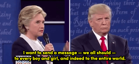 I knew how it was going to go down as soon as she said, “Donald, it’s good to be with you.” I knew for two reasons. First: because she really meant it. She was genuinely pleased to be on a stage with him. And it’s not because she likes him. It’s because she knew she was going to fuck him up and she knew exactly how she was going to do it and she was really looking forward to it.