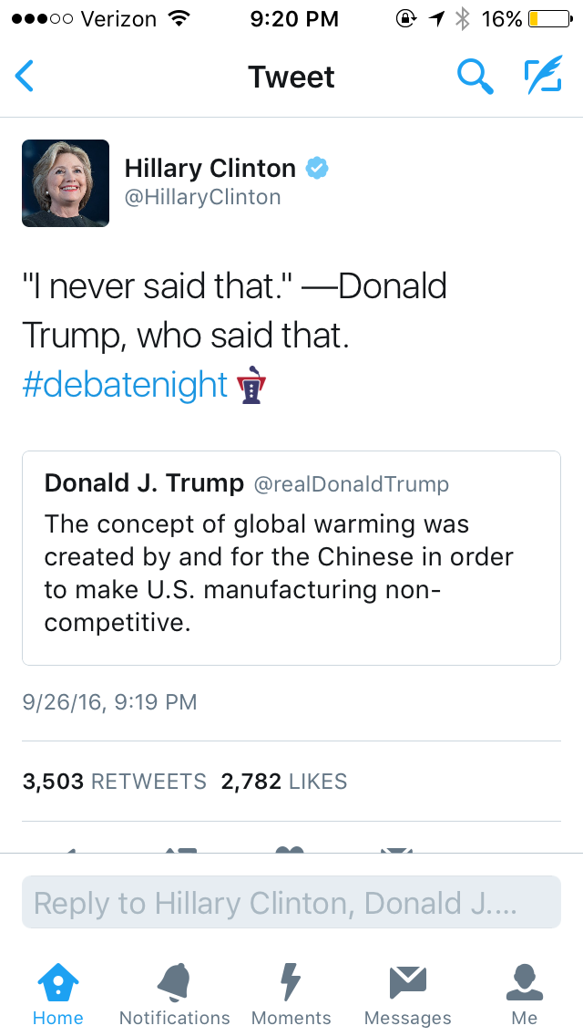 I want everyone to know what Hillary Clinton did tonight. It isn’t just that she ‘won’ the debate; Democratic presidential candidates have been winning these debates on substance since 1980 and often, it doesn’t help them in the election. She went in there tonight with two objectives: 1) make people warm up to her personally and 2) make Donald Trump self-destruct. Donald Trump’s objective was to make people believe that he is a grown-up, or at least that he can pretend to be a grown-up for ninety minutes.